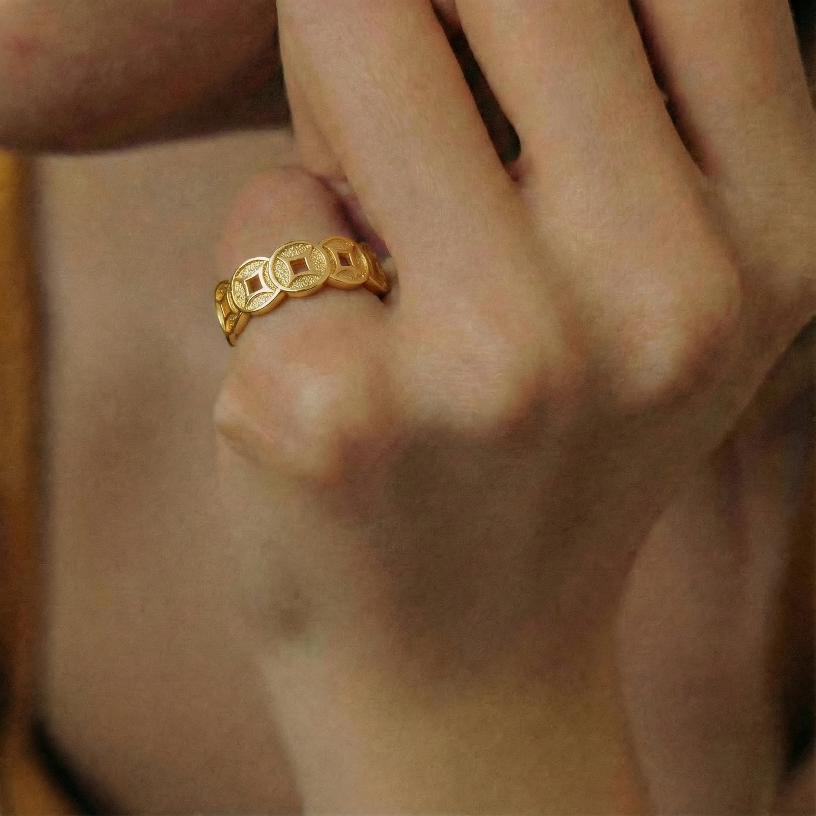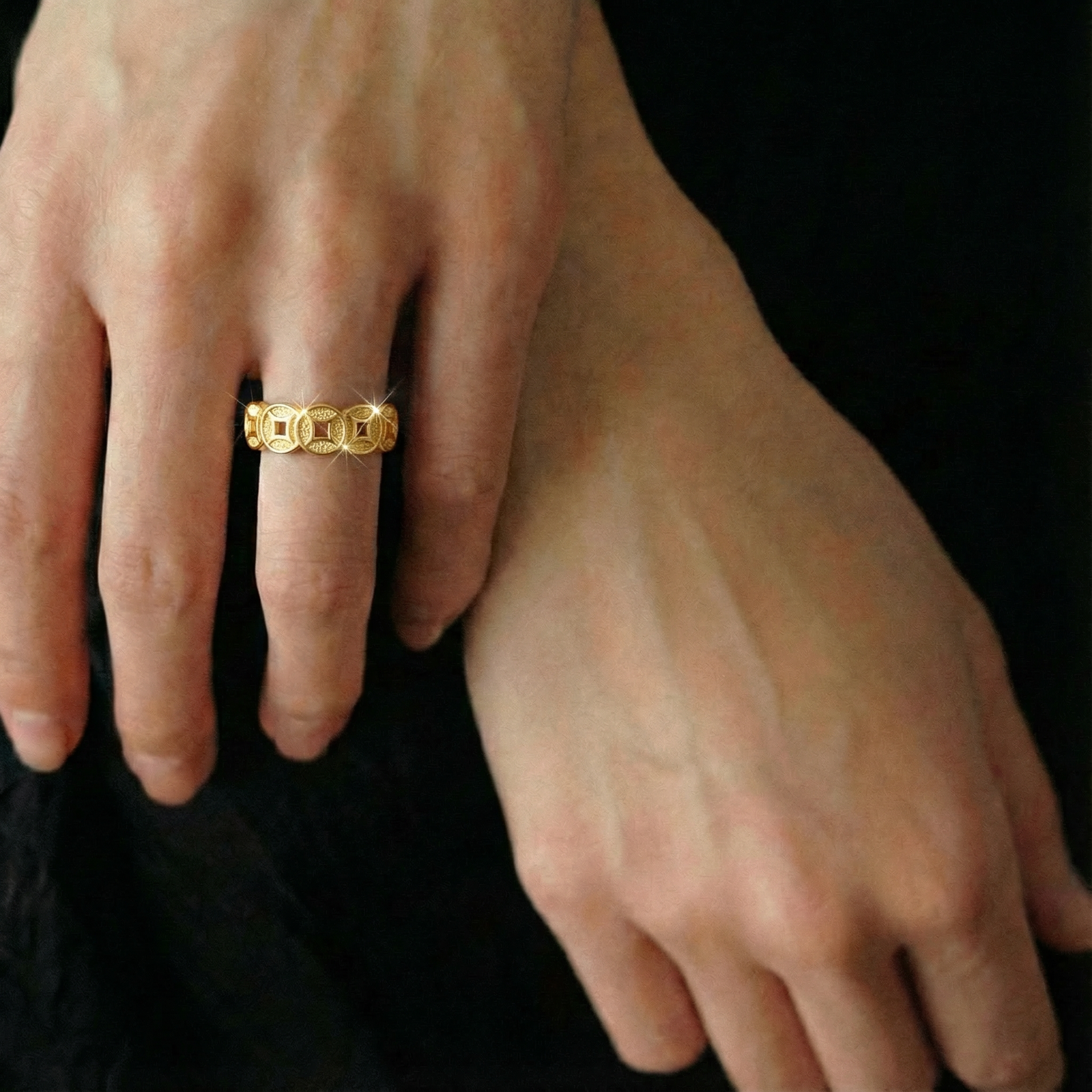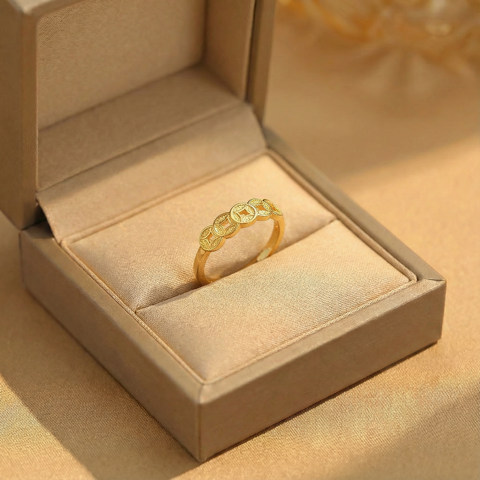 Nhẫn Họa Tiết Đồng Tiền Phong Cách Cổ Điển Mang Ý Nghĩa Chiêu Tài May Mắn