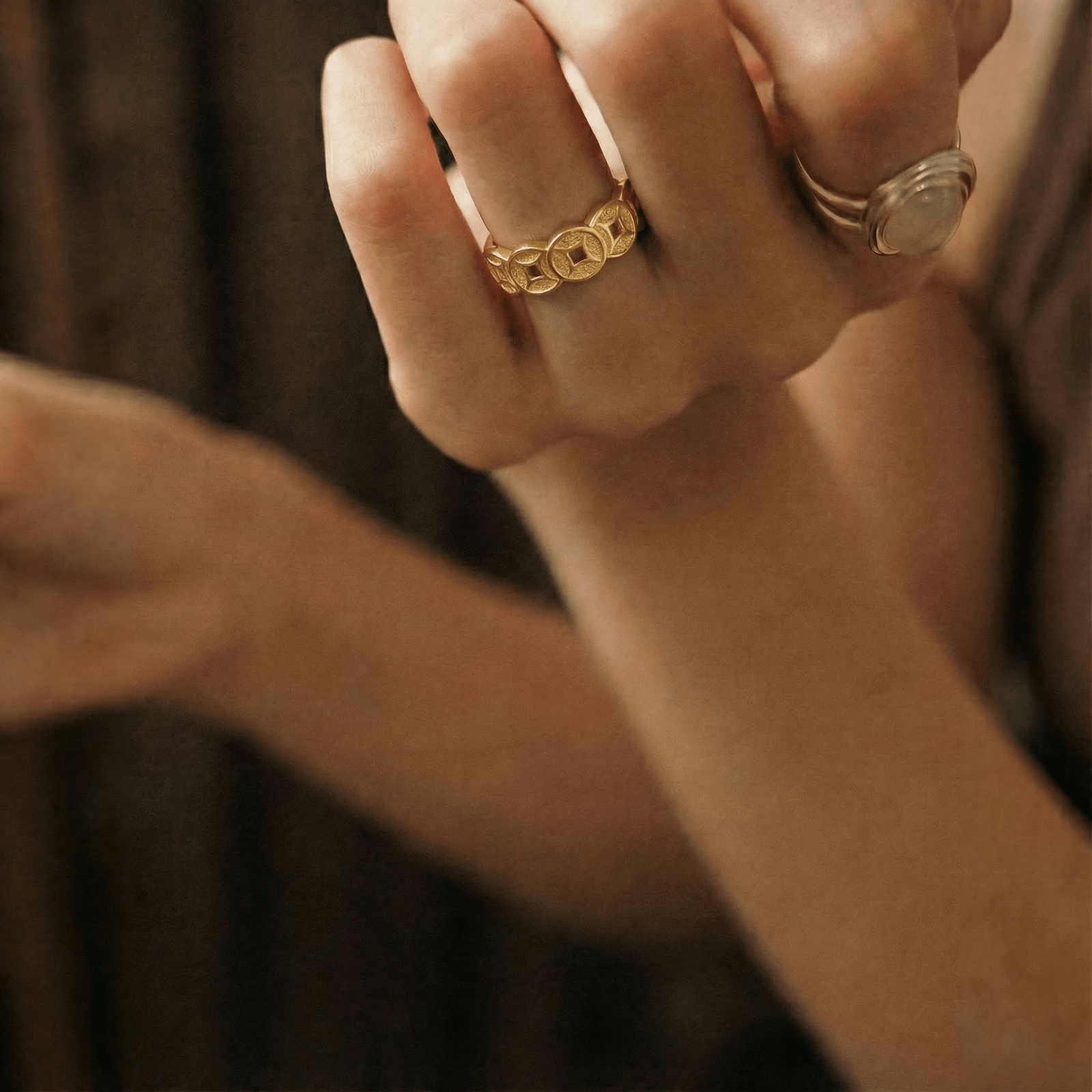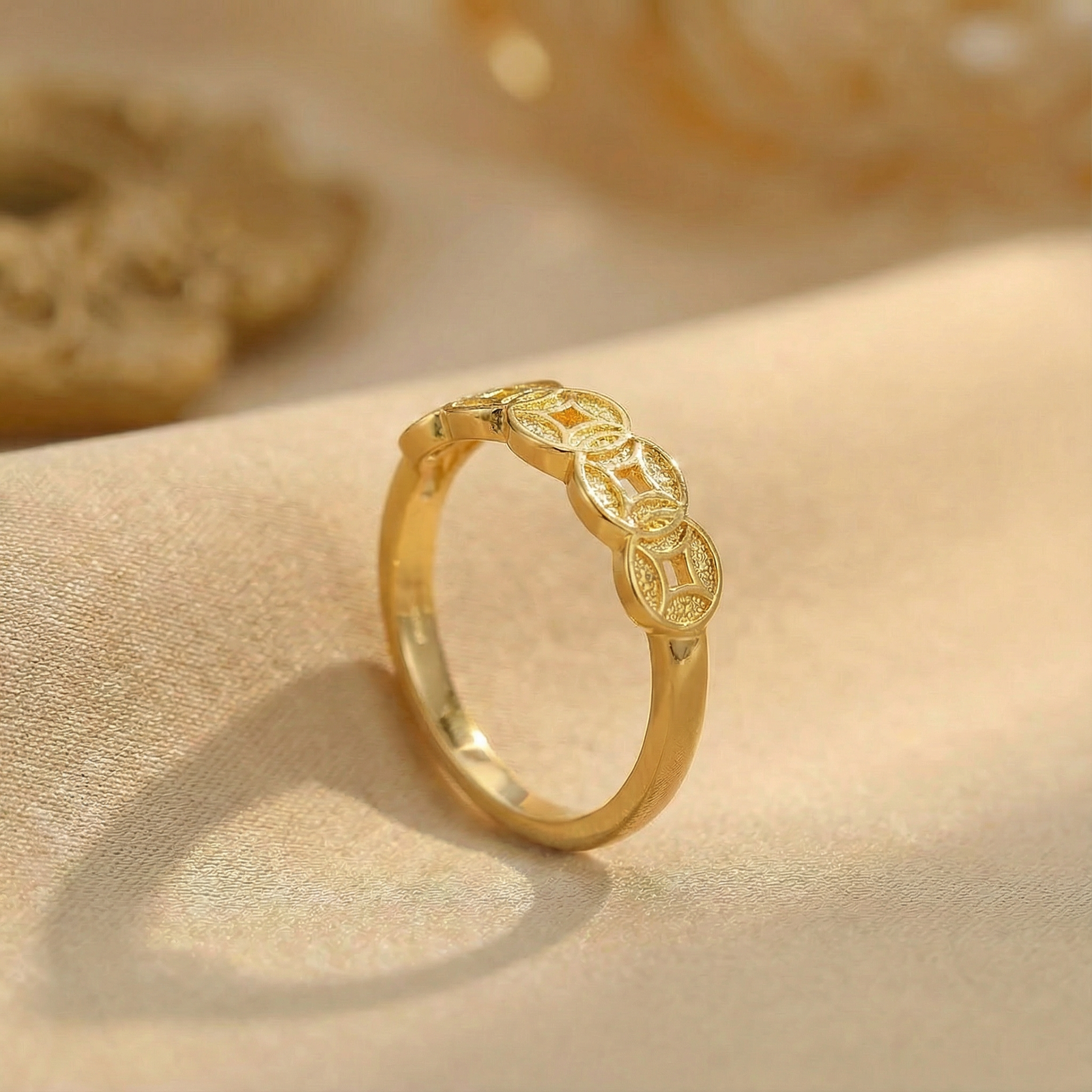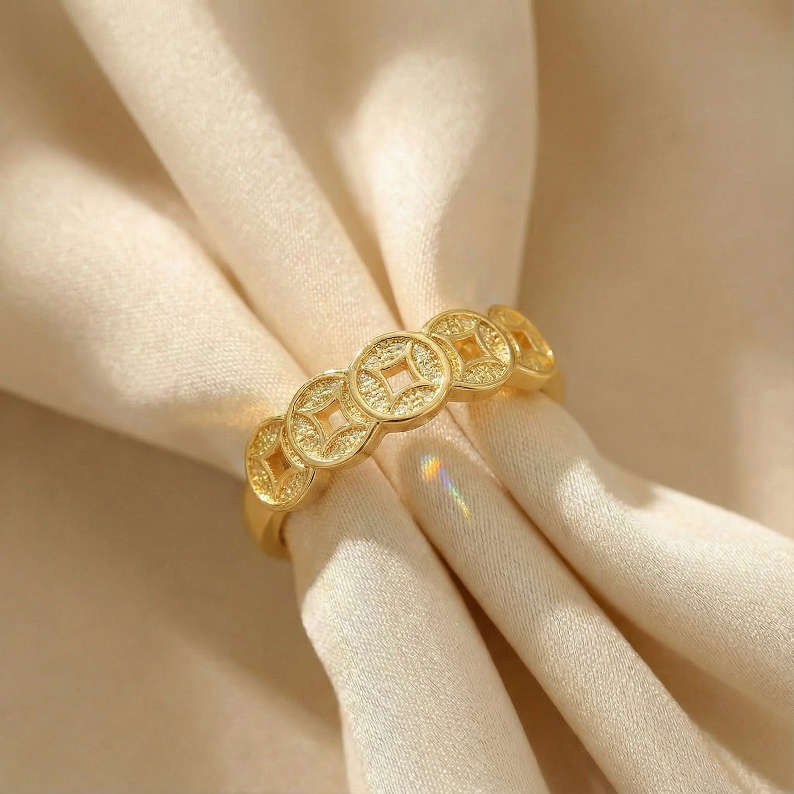 Nhẫn Họa Tiết Đồng Tiền Phong Cách Cổ Điển Mang Ý Nghĩa Chiêu Tài May Mắn