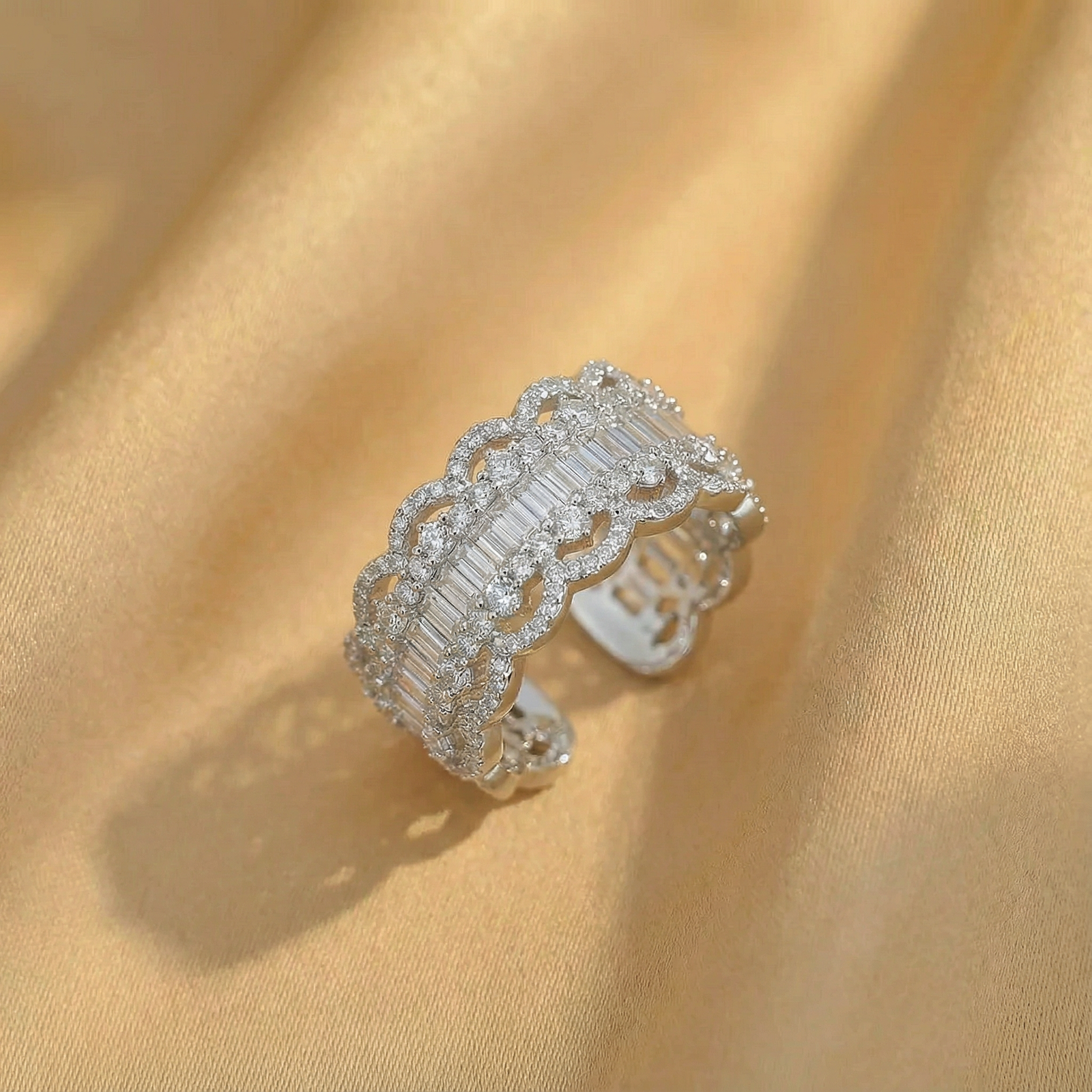 Nhẫn Thiết Kế Hoa Cánh Phong Cách Cá Tính Phủ Đính Đá Tạo Hiệu Ứng Ánh Sáng