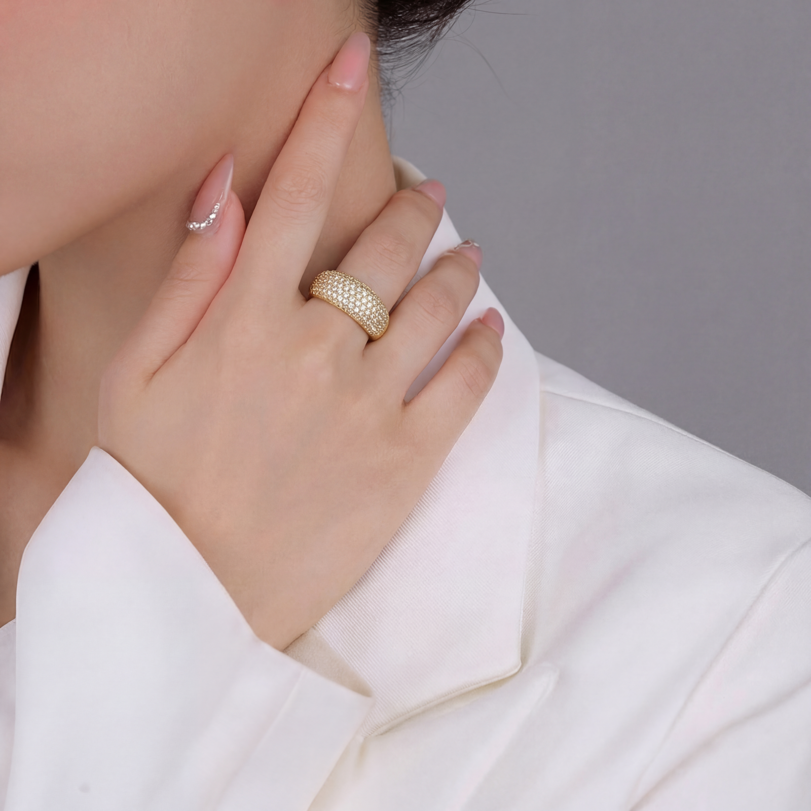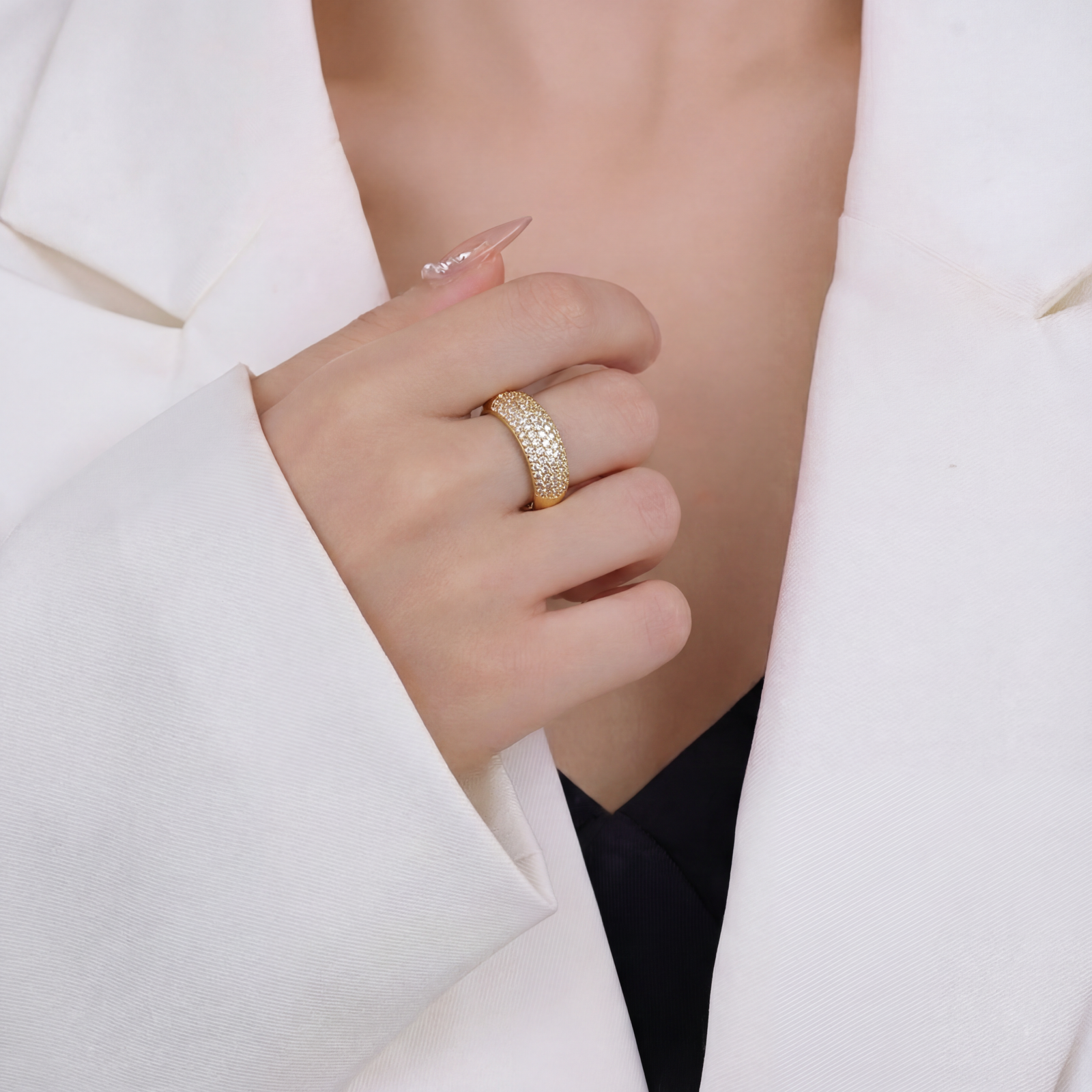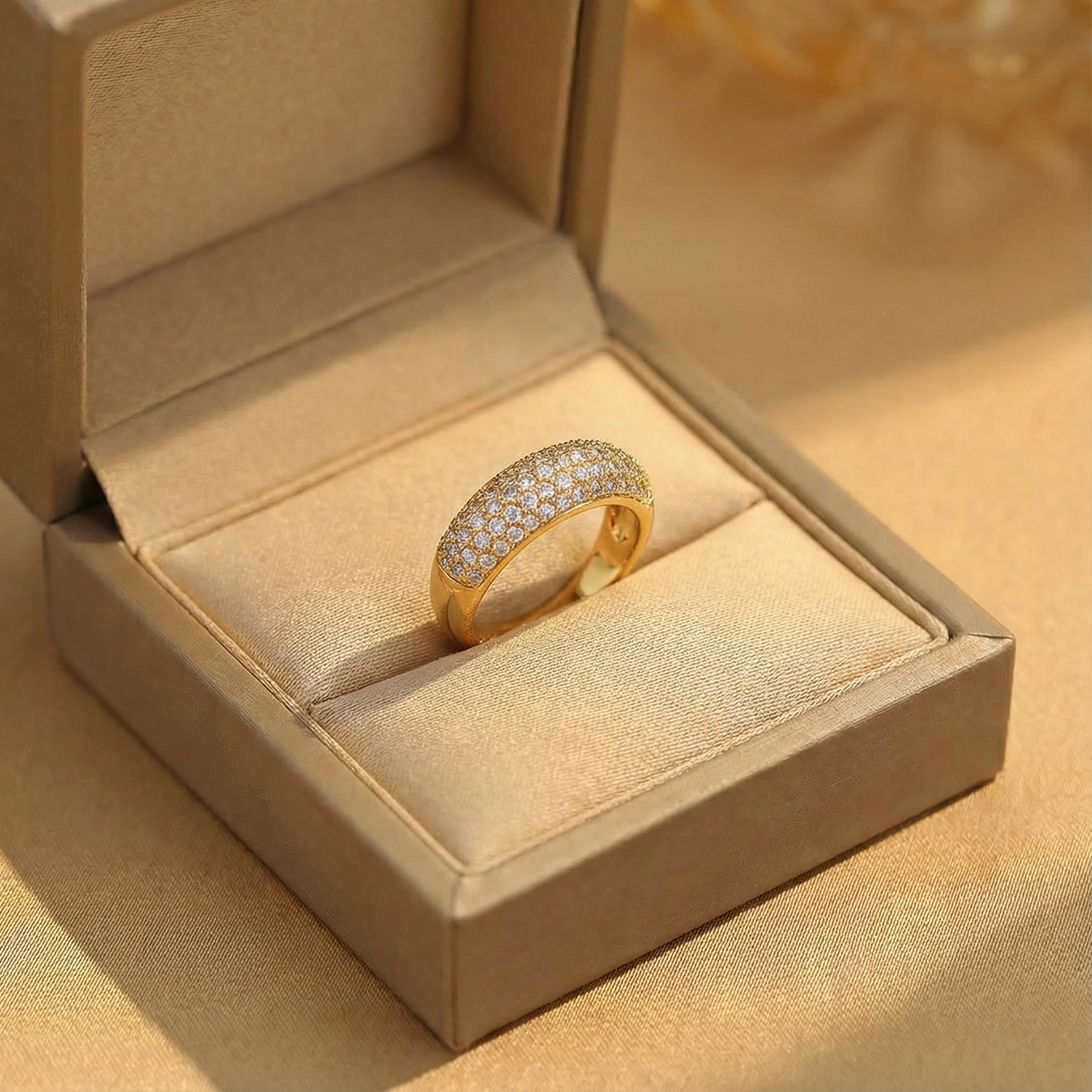 Hãy là người đầu tiên nhận xét “Nhẫn Vàng Phong Cách Cổ Điển Bản Tròn Phủ Đính Đá Dạng Ánh Sao”