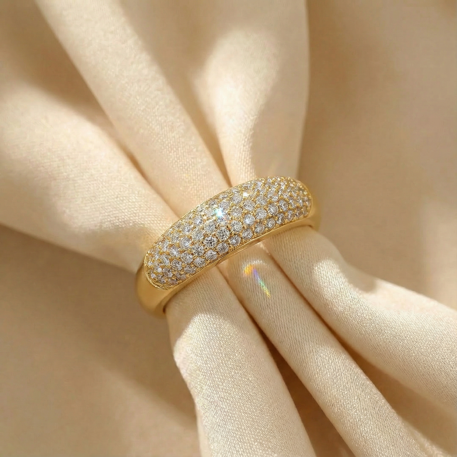 Nhẫn Vàng Phong Cách Cổ Điển Bản Tròn Phủ Đính Đá Dạng Ánh Sao